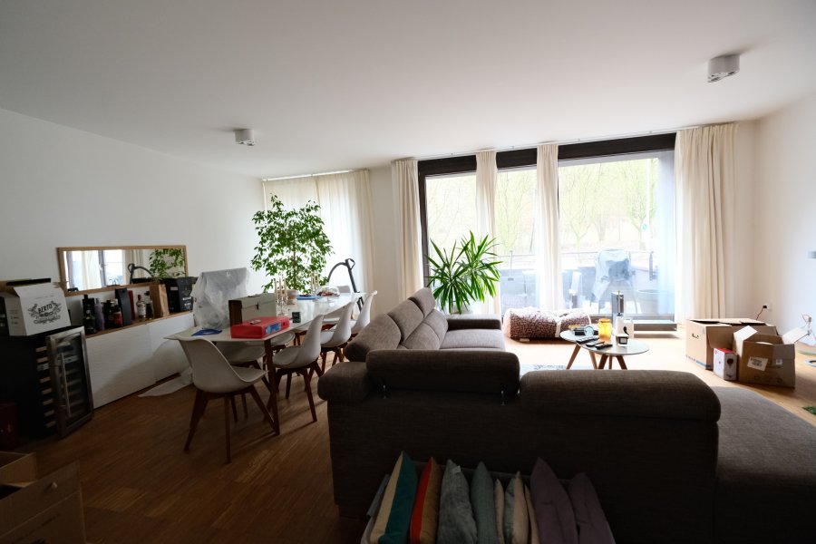 Luxembourg Muhlenbach dans un résidence de haut standing entourée de verdure, proche de la Forêt de Bambesch et à 10 minutes du centre-ville, spacieux appartement de 105 m2 habitable + terrasse, au premier étage avec ascenseur et comprenant : entrée avec placard, WC séparé, grand living de 55 m2 avec sortie terrasse, cuisine équipée ouverte sur le living, grande salle de bains avec WC, deux chambres à coucher avec placards, parquet par tout, chauffage au sol, triples vitrages, une cave, un emplacement de parking. Libre le premier avril 2026. Contrat de bail de deux ans minimum. Frais d'agence : un mois de loyer + TVA, 50% à charge du locataire, 50% à charge du bailleur. Contact et visites : Rosalba MAITRE téléphone : 691 550 189, Email :rosalba@parkagence.lu et Arianna GHITTINO, téléphone : 691 205 573, email : arianna@parkagence.luCaractéristiques