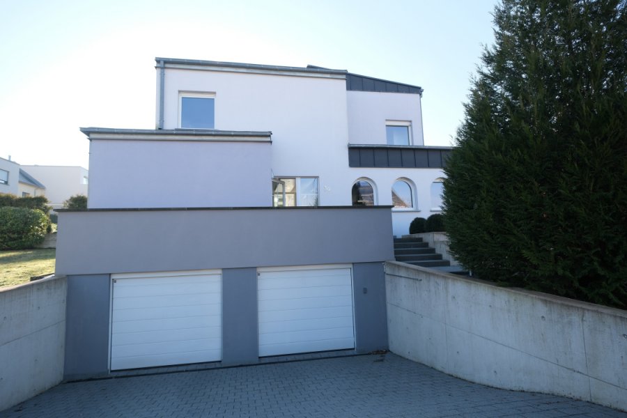 BRIDEL, 3A, rue Jean Oster, dans une rue très résidentielle au calme proche de l'école, belle maison atypique de 200 m2, libre de 4 côtés sur 7,84 ares de terrain, très lumineuse. La maison s'articule en mi-étage et elle composée de : entrée et couloir de distribution avec marbre au sol, WC séparé, une cuisine séparée avec électroménagers SIEMENS, plan de travail en granit, table fixe, living très lumineux (marbre de carrare au sol) avec grandes baies-vitrées donnant accès à la terrasse et au jardin, joli coin cosy de lecture avec cheminée ouverte au bois, étagères, une spacieuse salle à manger avec parquet au sol, une chambre à coucher, premier étage : une chambre à coucher avec placard encastré, une chambre à coucher avec armoire dressing, demi-étage : une grande salle de bains avec fenêtre, baignoire, douche, double lavabo, WC, une chambre à coucher,Sous-sol : une salle de douche avec WC, garage pour deux voitures, buanderie, cave, chaufferie avec chauffage au mazout, deux réservoirs pour le mazout,