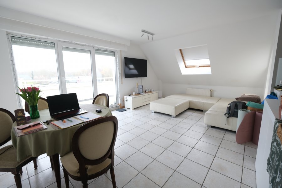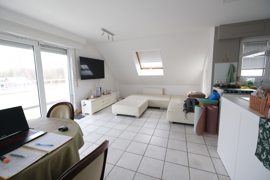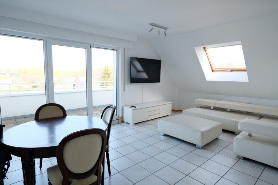 STRASSEN, dans un immeuble très soigné situé à 104 route d'Arlon, bel appartement meublé, style penthouse, de 62 m2, très lumineux, meublé, au 3e étage avec ascenseur et comprenant : entrée, living avec accès terrasse, une cuisine équipée avec îlot central, une chambre à coucher avec accès terrasse placards sur mesure, une salle de douche avec WC, sous les combles (4e étage) une buanderie (commune) avec lave-linge et sèche-linge et pièce privative (cave), un emplacement de parking au sous-sol. L'appartement est actuellement loué.Contact et visites : Rosalba MAITRE, téléphone : 691 550 189 Email : rosalba@parkagence.lu et